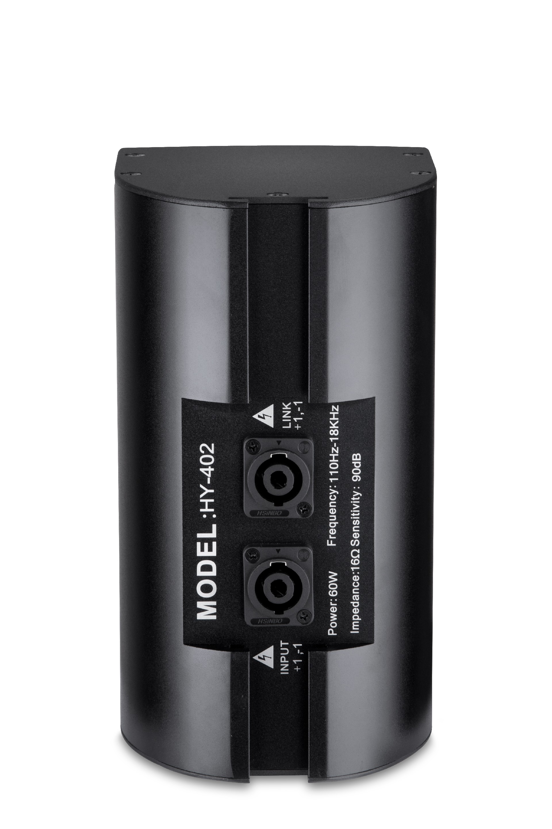 HY-402是一款全天候铝合金压铸音箱,由2个4"英寸定制全频单元组成,能有效减弱混响环境差的干扰,高清晰度的音箱,全天候设计确保室内外使用的可靠性。
